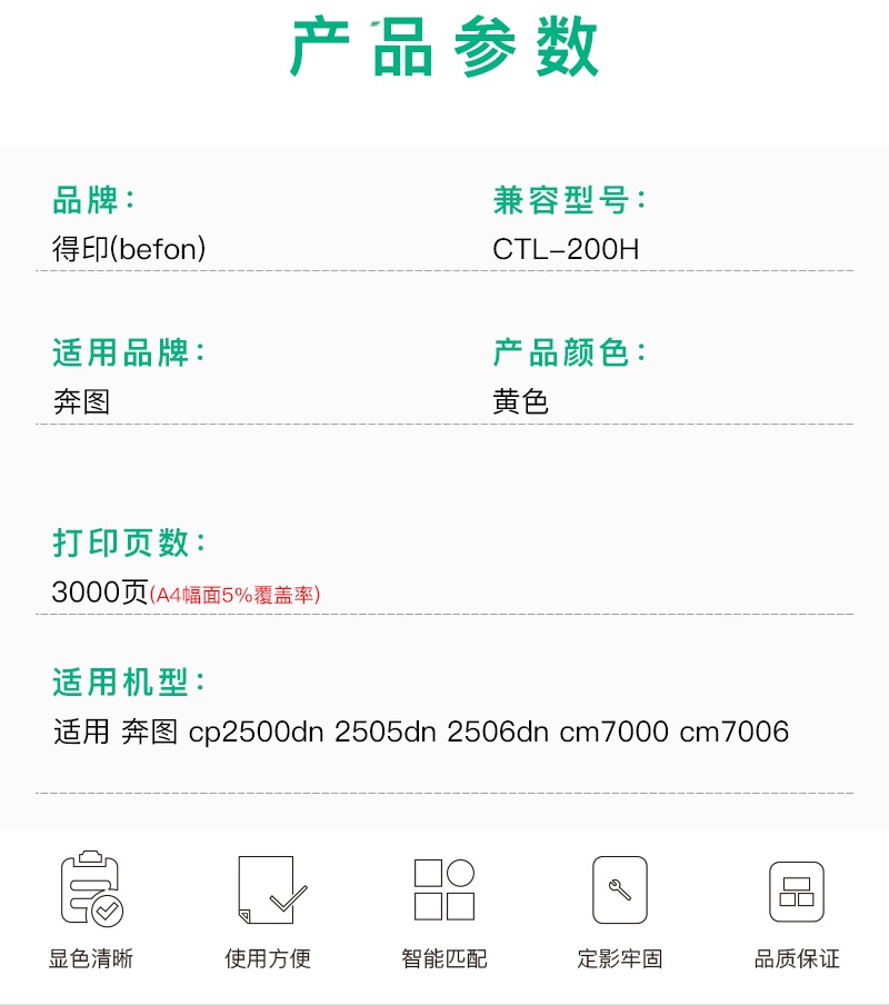 得印CTL-200粉盒适用奔图cp2500dn粉盒25052506CM7006FDN单位:支 黄色