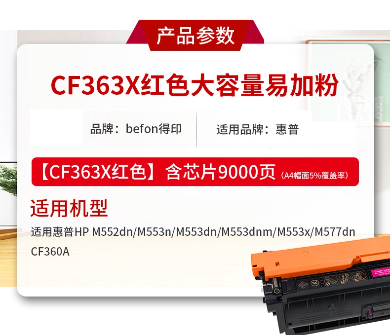 得印 CF363X红色硒鼓惠普HP M552dn M553n M553dn M553dnm 单位:支 红色