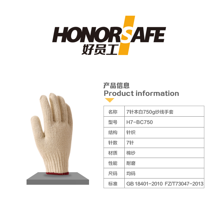 好员工 7针本白750g H7-BC750 120双起订 白色