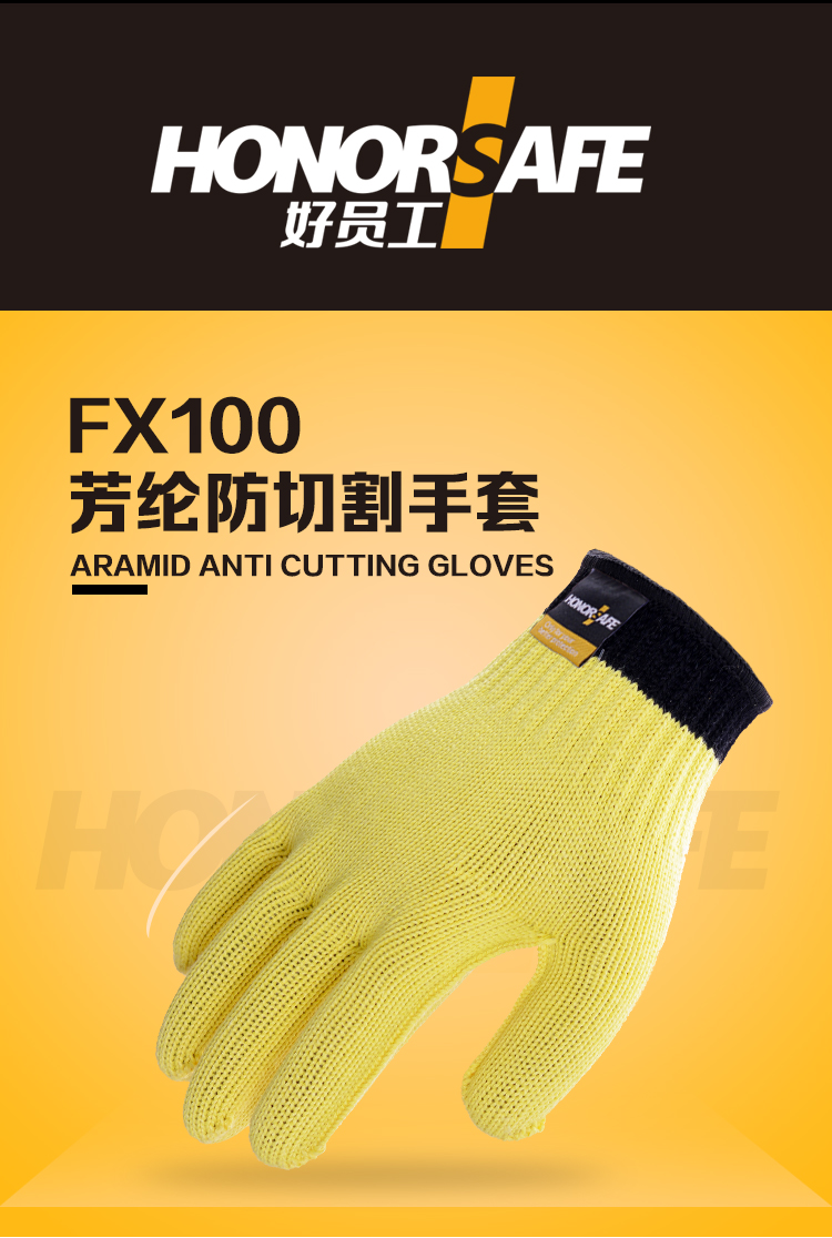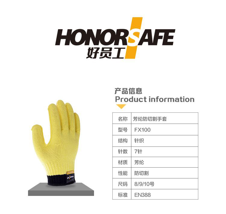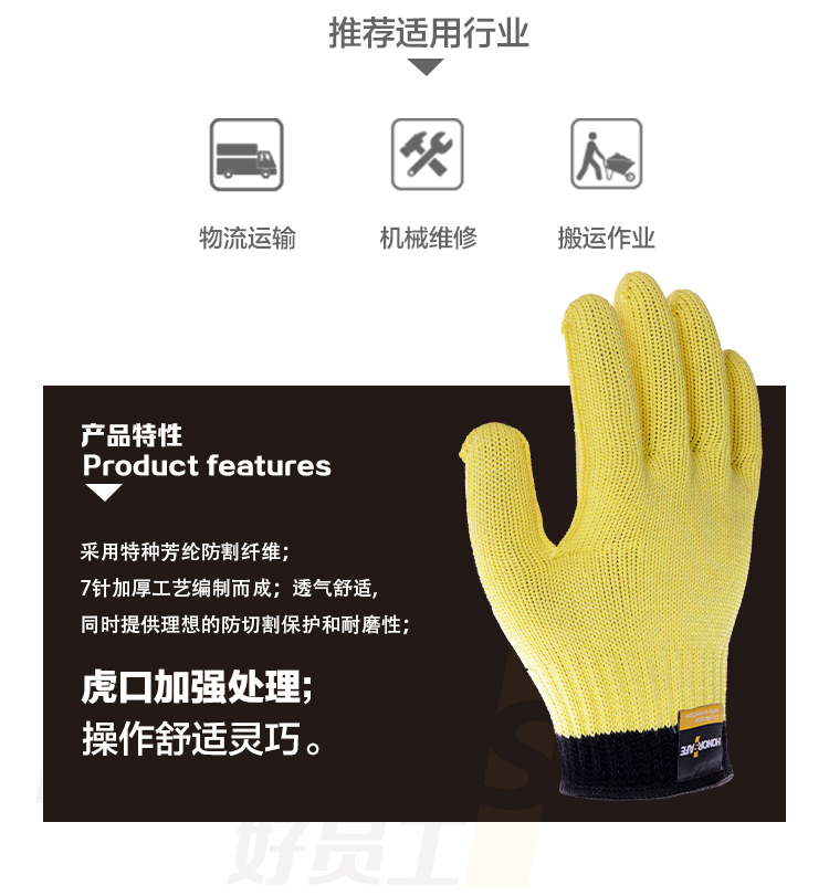 好员工 7针芳纶双色防切割黑 FX100 120双起订 黄色