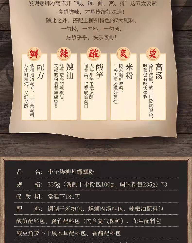 李子柒柳州螺蛳粉335g*3 香槟黄