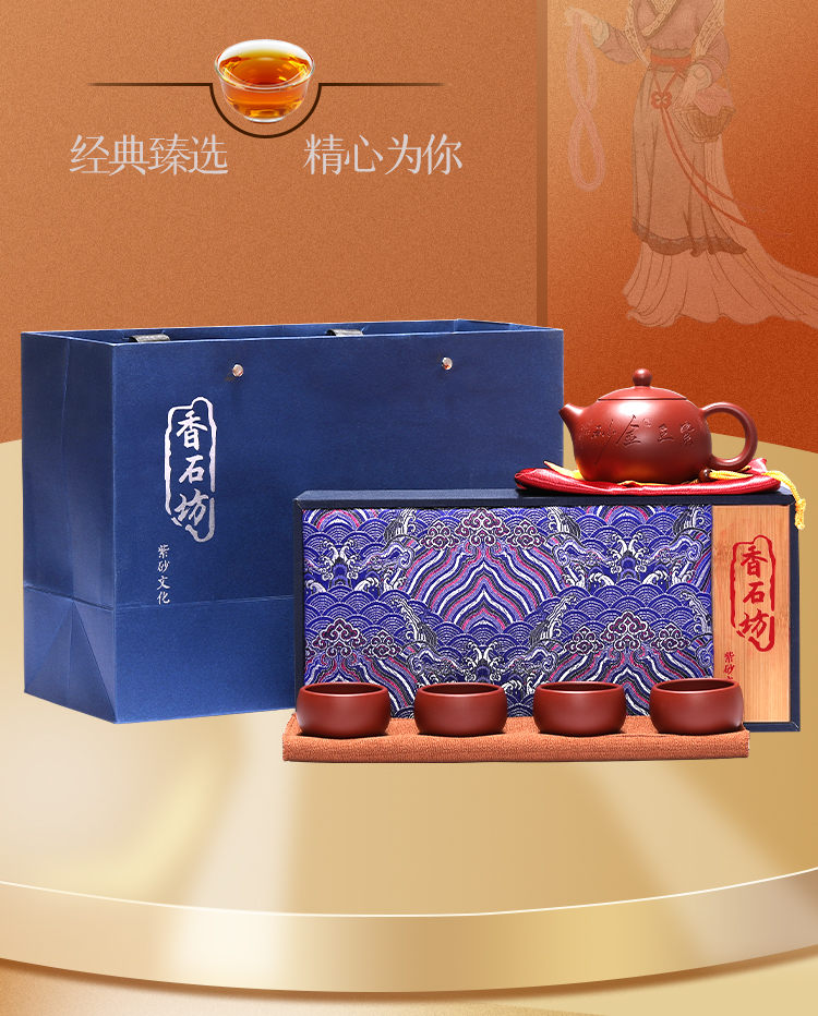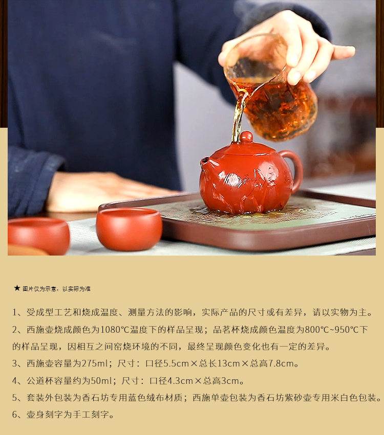 香石坊宜兴原矿纯手工紫砂壶茶具一壶4杯套装对盏西施套装275mlBT906 单位:套 对盏西施一壶4杯套装礼盒