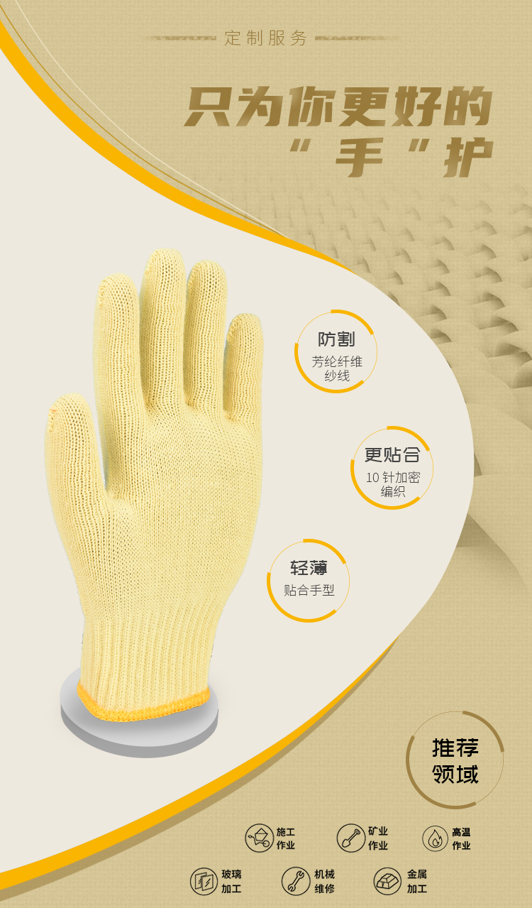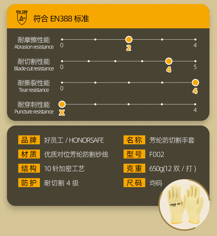 好员工 10针芳纶切割 F002 100双起订 黄色