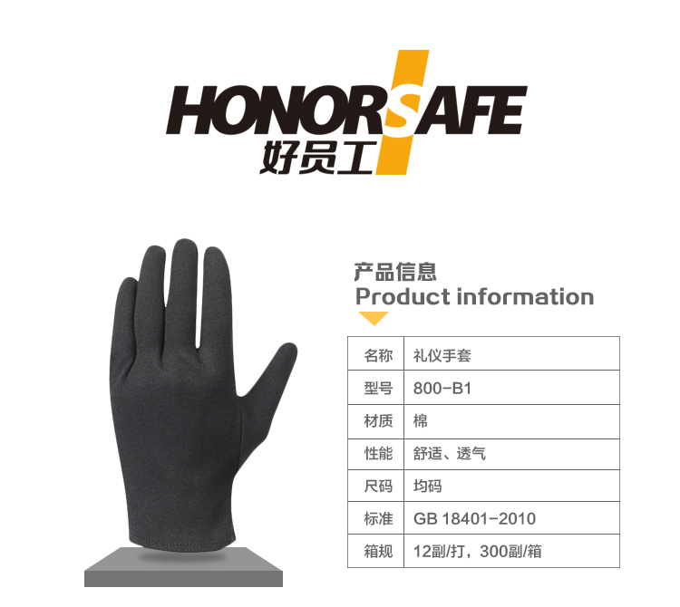 好员工 礼仪手套 800-B1 120双起订 黑色