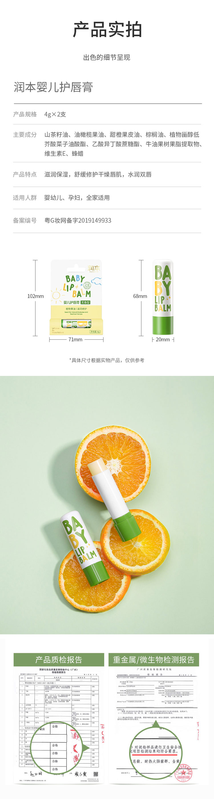 润本婴儿护唇膏4g*2 白色