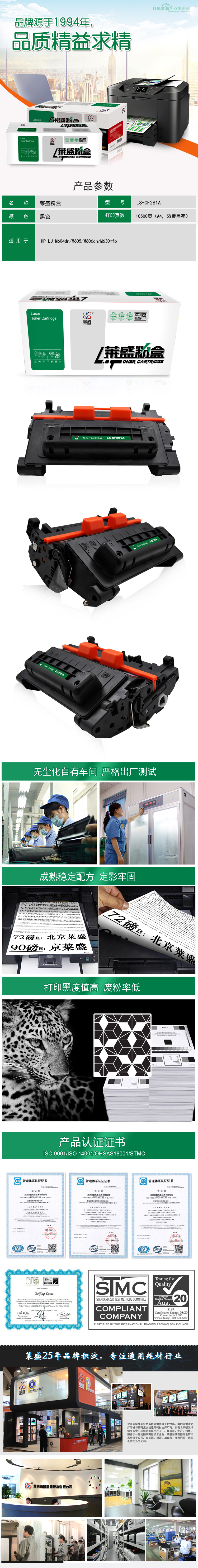 莱盛 LS-CF281A 激光打印机粉盒 全新 有芯片 10.5K 4支/箱 黑色