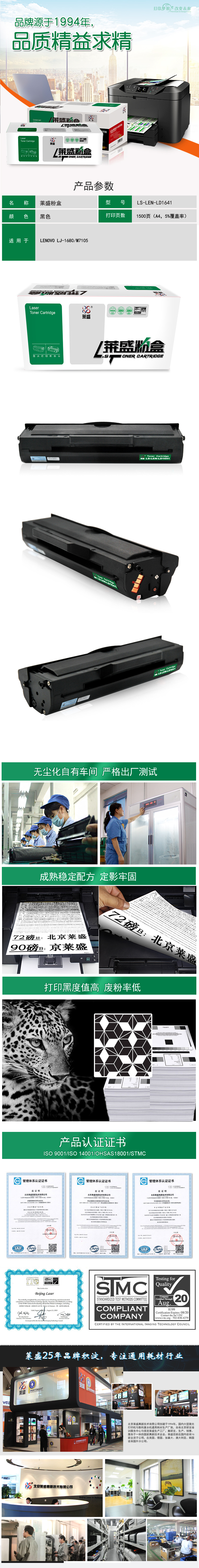 莱盛(laser) LS-LEN-LD1641 1500页 适用于 联想 LJ-1680/M7105 硒鼓/粉盒 (计价单位:只) 黑色