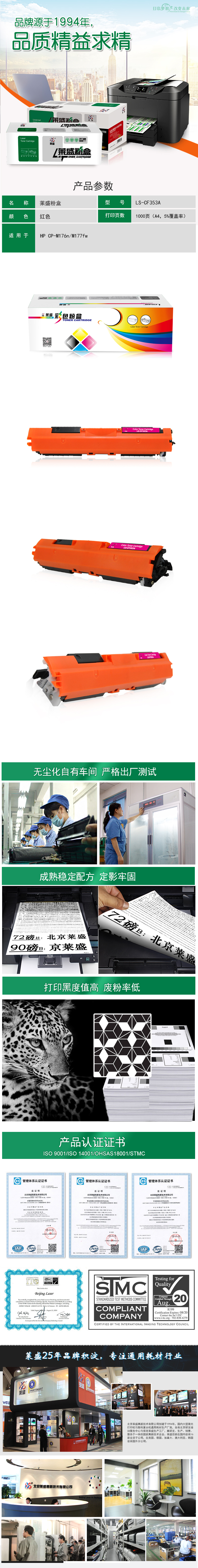 莱盛 LS-CF353A 粉仓 全新 有芯片 1K 25支/箱 品红色