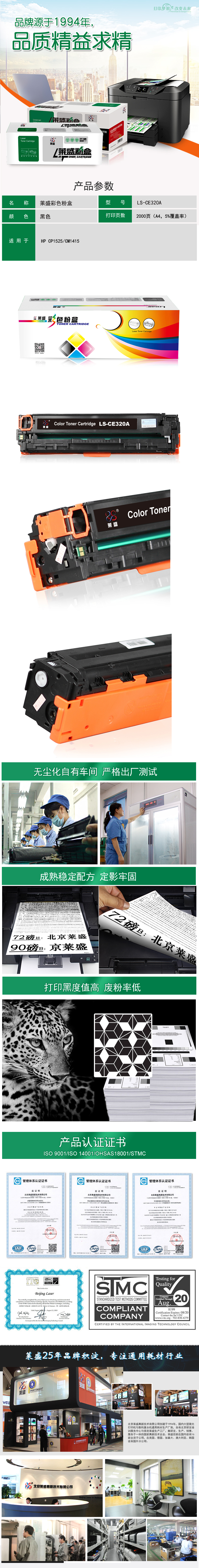 莱盛 LS-CE320A 彩色激光打印机粉盒 全新 有芯片 2K 黑色