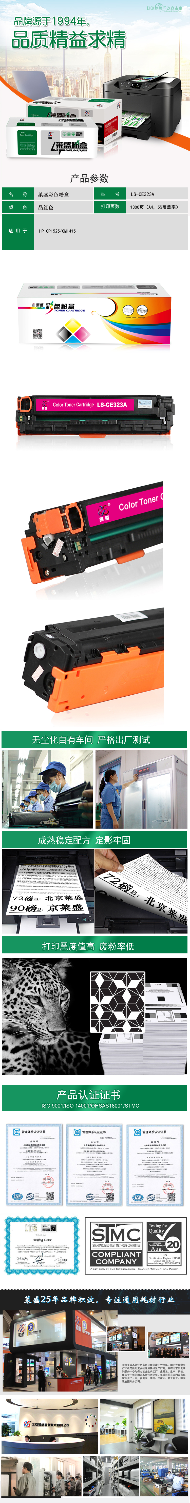 莱盛 LS-CE323A 彩色激光打印机粉盒全新 有芯片 1.3K 品红色