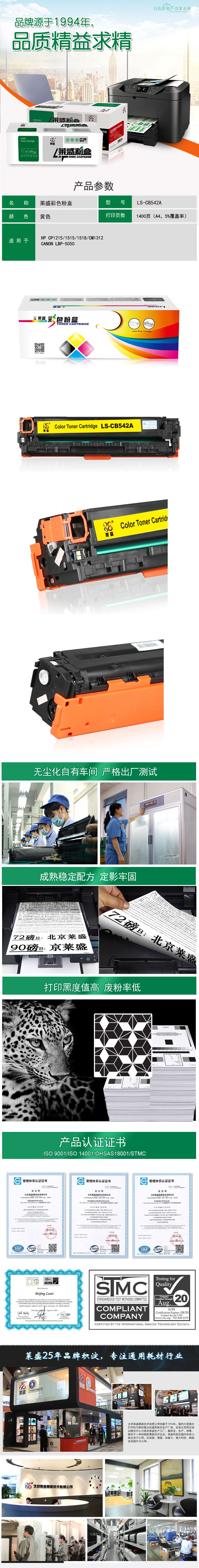 莱盛(laser) LS-CB542A 1400页 适用于 HP CP1215/1515/1518/CM1312,CANON LBP-5050 硒鼓/粉盒 (计价单位:只) 黄色
