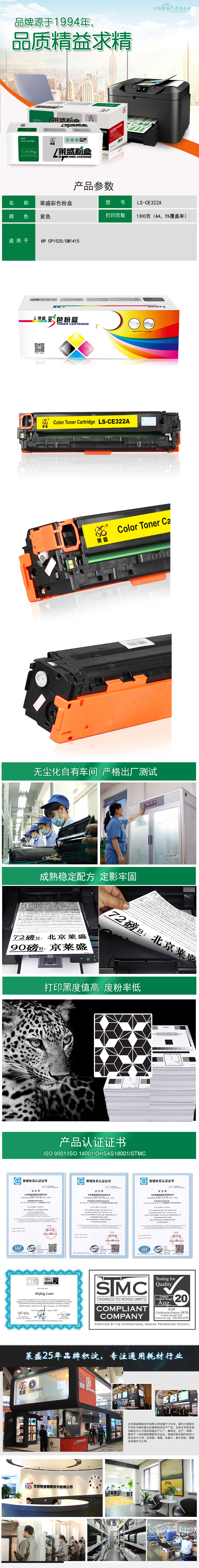 莱盛 LS-CE322A 彩色激光打印机粉盒 全新 有芯片 1.3K 黄色