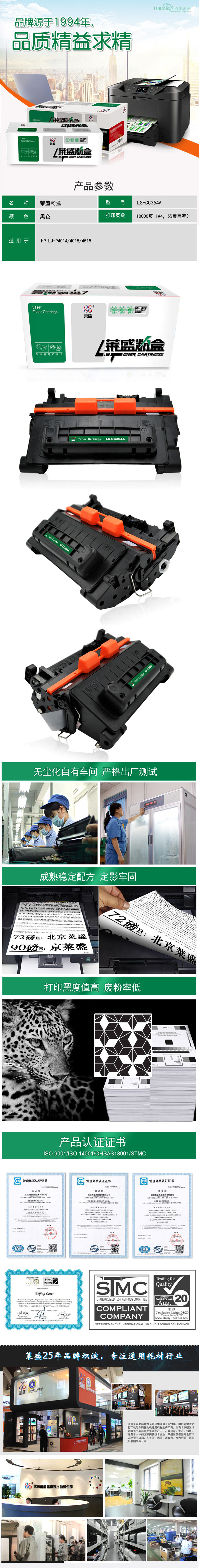 莱盛(laser) LS-CC364A 10000页 适用于 HP LJ-P4014/4015/4515 硒鼓/粉盒 (计价单位:只) 黑色