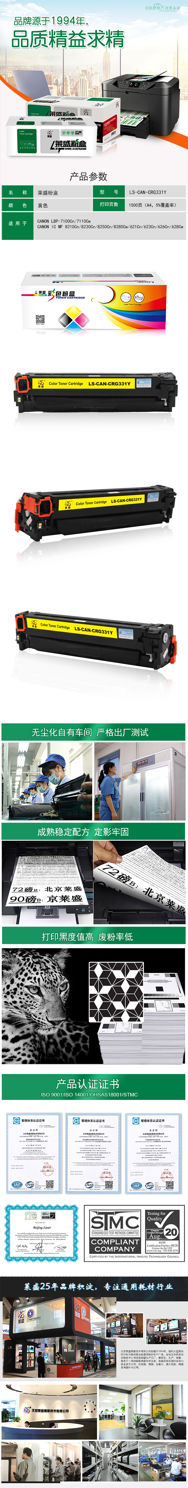 莱盛(laser) 莱盛 LS-CAN-CRG331Y 打印量1500页适用于CANON7100/7110,IC MF 8210/8230/621(计价单位:只)黄色 硒鼓 (计价单位:只) 黄