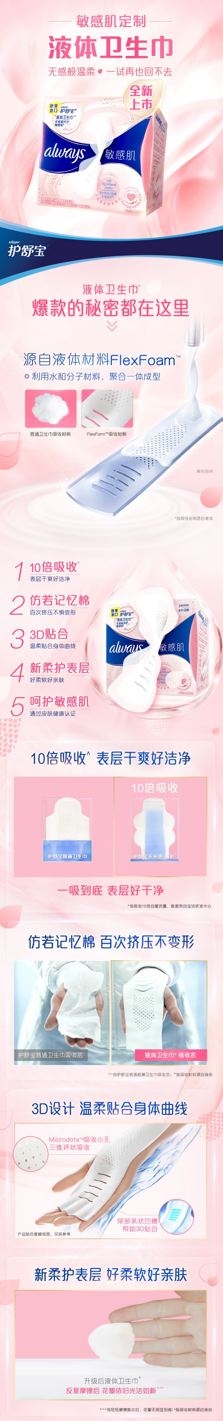 护舒宝液体卫生巾敏感肌系列日用9片(单位:包) 混色