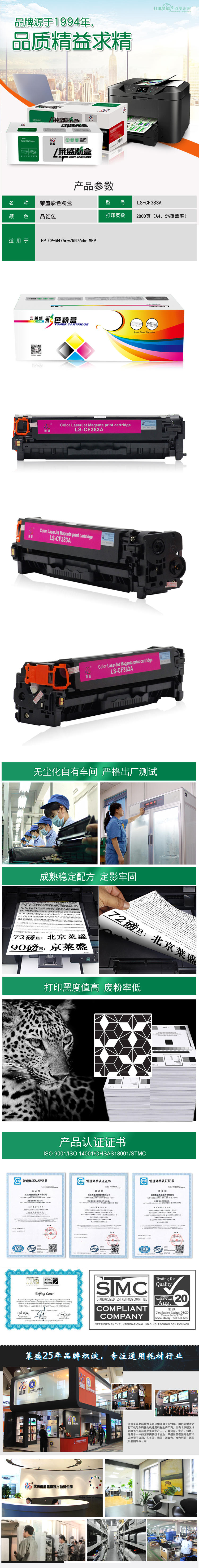 莱盛 LS-CF383A 彩色激光打印机粉盒 全新 有芯片 2.8K 品红色