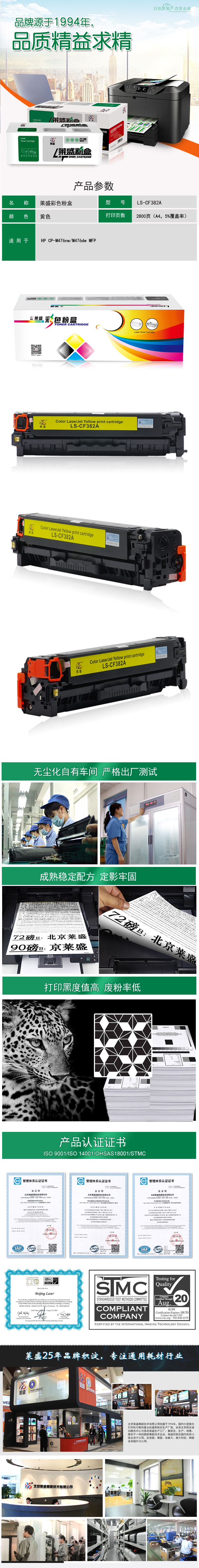莱盛 LS-CF382A 彩色激光打印机粉盒 全新 有芯片 2.8K 黄色