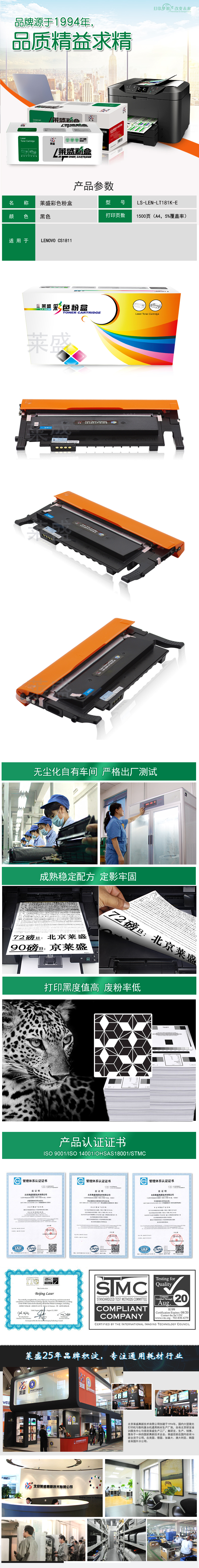 莱盛 LS-LEN-LT181K-E 粉仓易加粉 再生 有芯片 1.5K 黑色