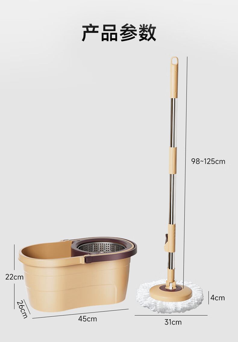 家杰优品 JJ-A15 4个拖把头 双驱动旋转拖把桶 咖色(单位:套)