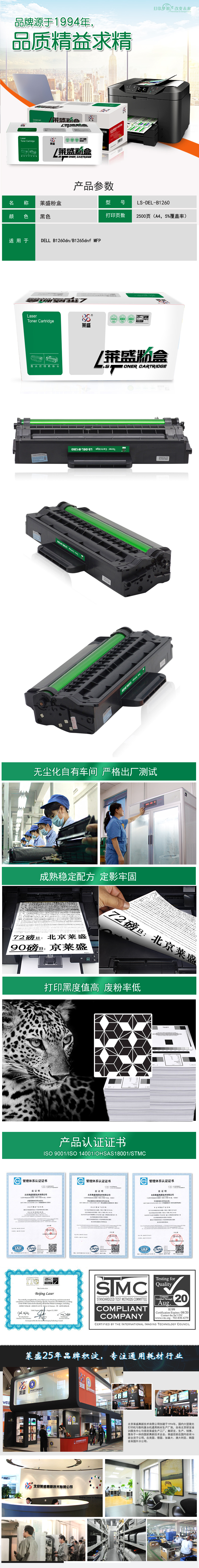 莱盛 LS-DEL-B1260 激光打印机粉盒全新 有芯片 2.5K 黑色