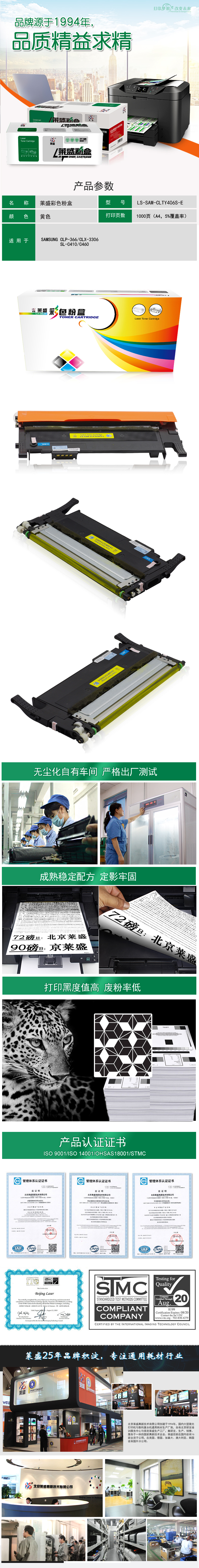 莱盛 LS-SAM-CLTY406S-E 粉仓易加粉 再生 有芯片 1K 黄色