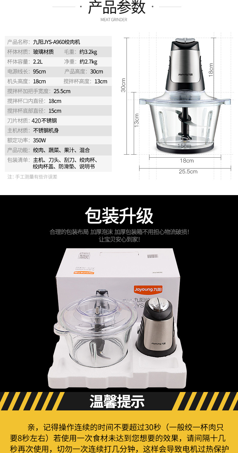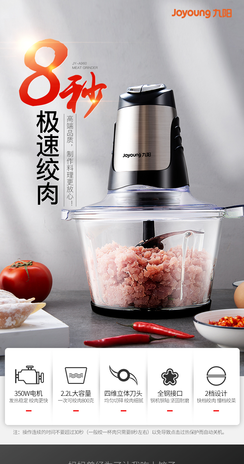 九阳(Joyoung)绞肉机 JYS-A960 2.2L(单位:台)) 黑色