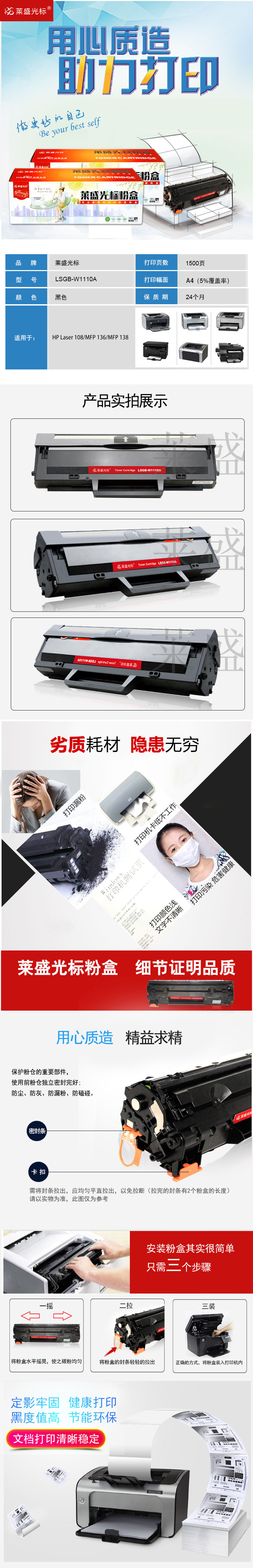莱盛光标 LSGB-W1110A 激光打印机粉盒 全新 有芯片 1.5K 黑色