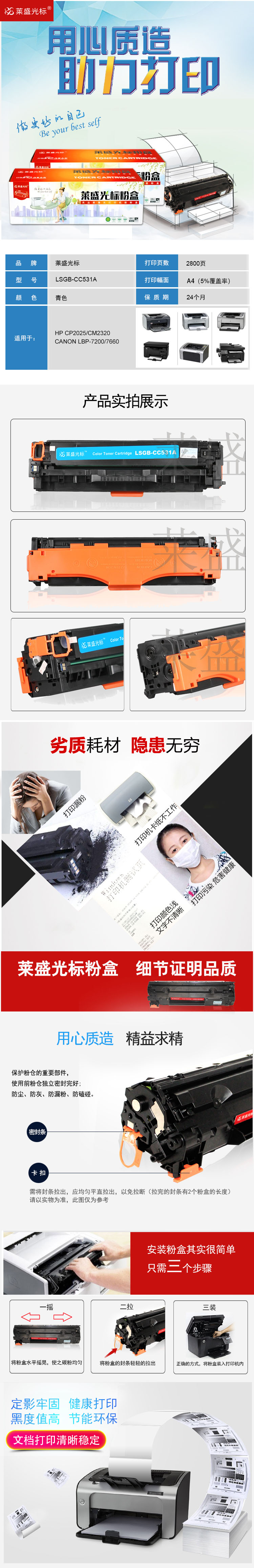莱盛光标 LSGB-CC531A 约2800页 适用于HP CP2025 硒鼓 1.00 只/支 (计价单位:支) 青色