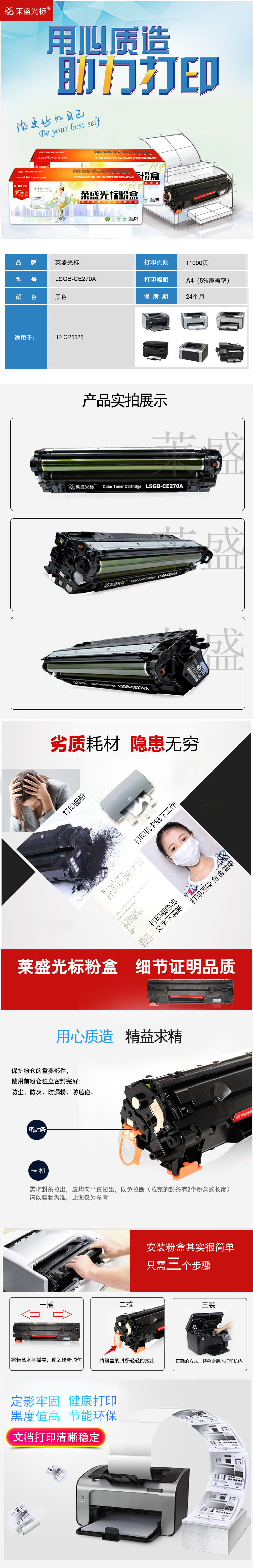 莱盛光标 LSGB-CE270A 激光打印机粉盒 再生 有芯片 11K 黑色
