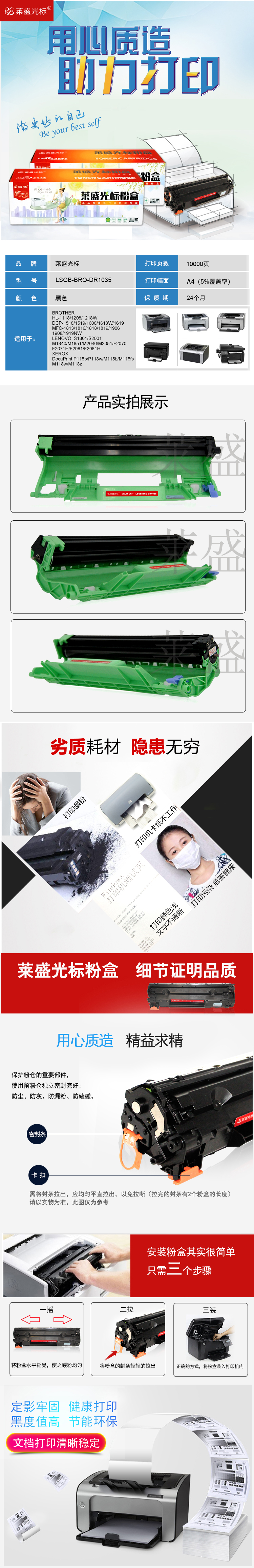 莱盛光标 LSGB-BRO-DR1035 激光打印机鼓体单元 黑色 全新 10K 黑色