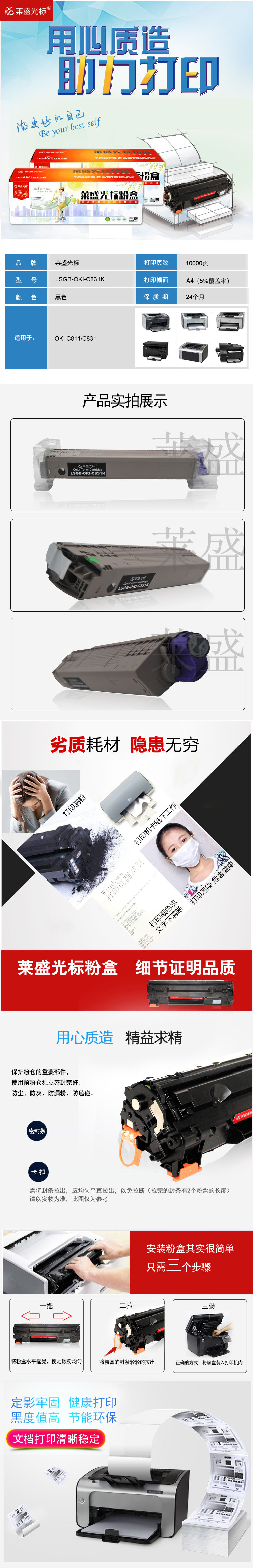 莱盛光标 LSGB-OKI-C831K 激光打印机粉仓 再生 有芯片 10K 黑色