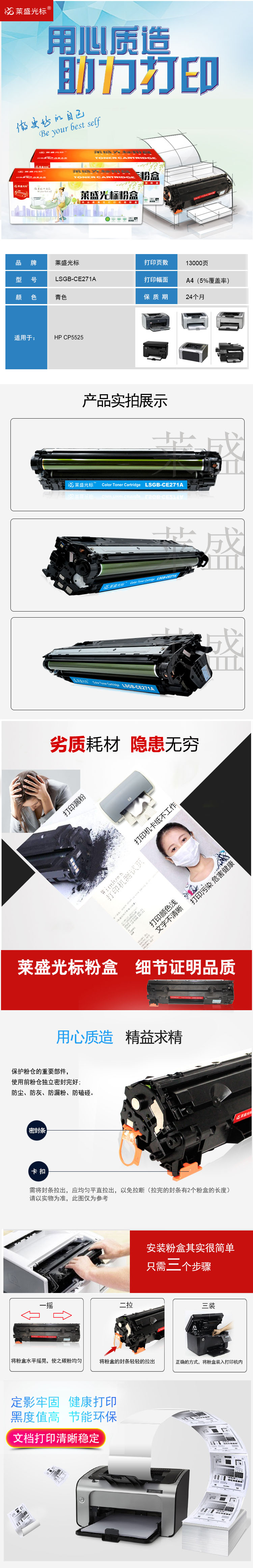 莱盛光标 LSGB-CE271A 激光打印机粉盒 再生 有芯片 13K 青色