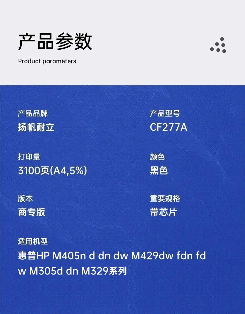 扬帆耐立(YFHC) CF277A 打印量3100页(5*) 带芯片 适用于HP M405n/d/dn/dw/M429dw/fdn/fdw/M305d/dn/M329系列 硒鼓 (计价单位:只) 黑色