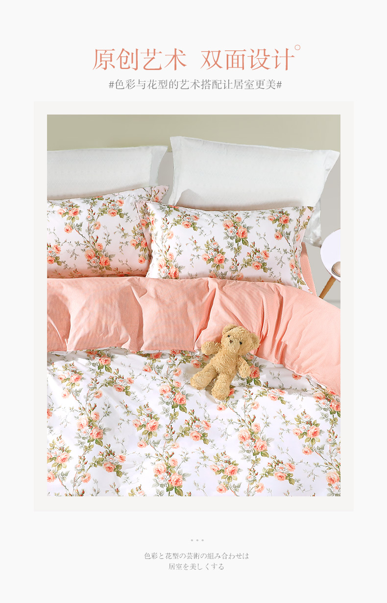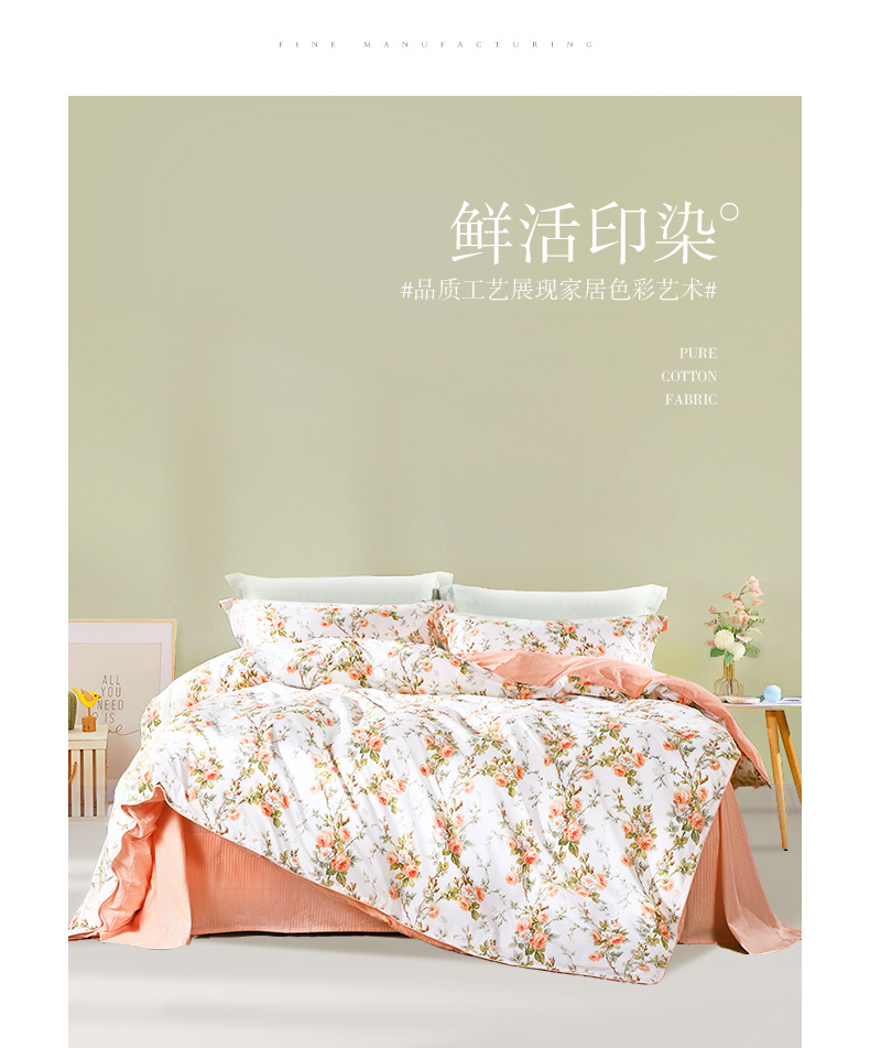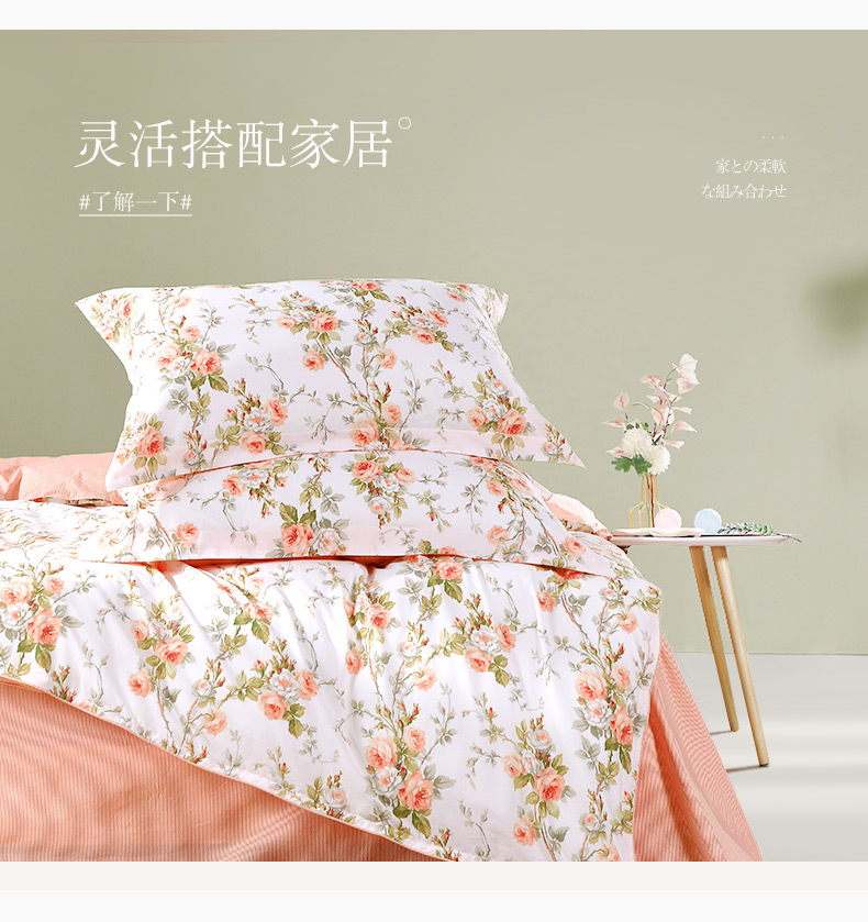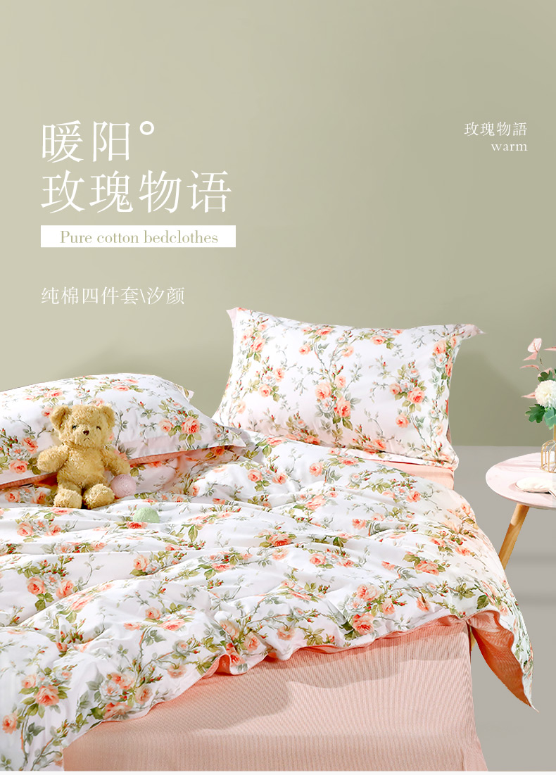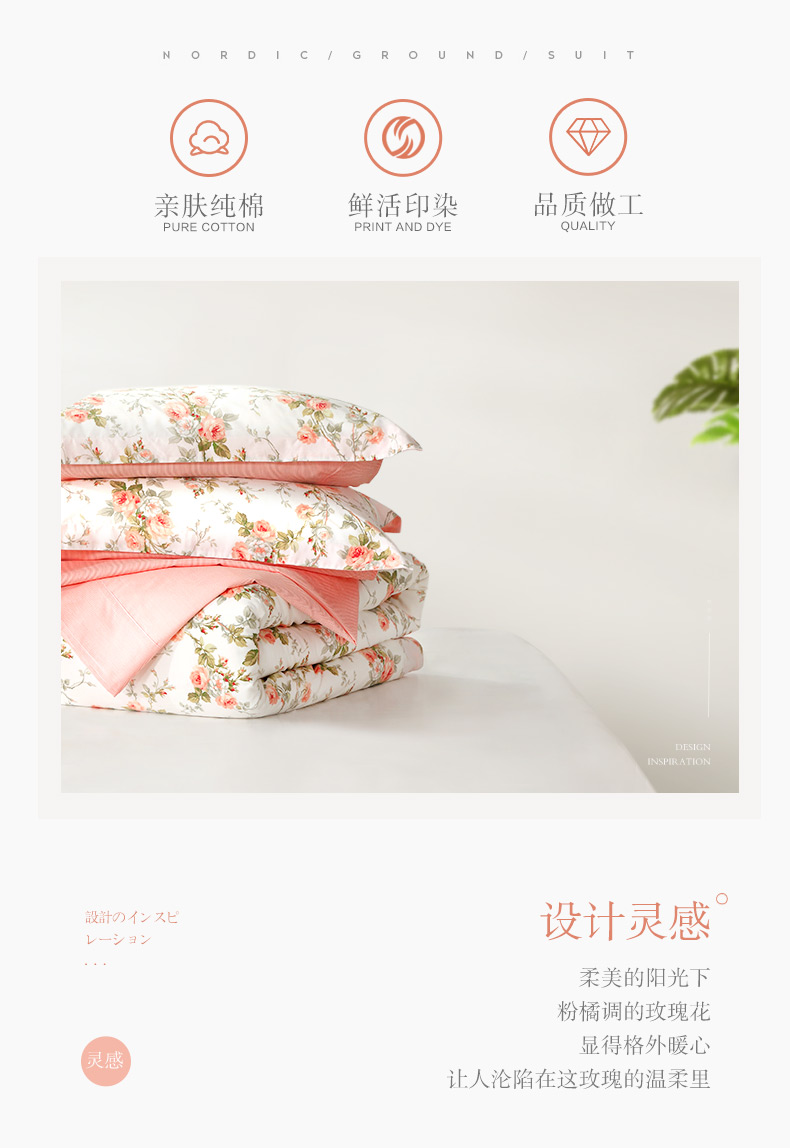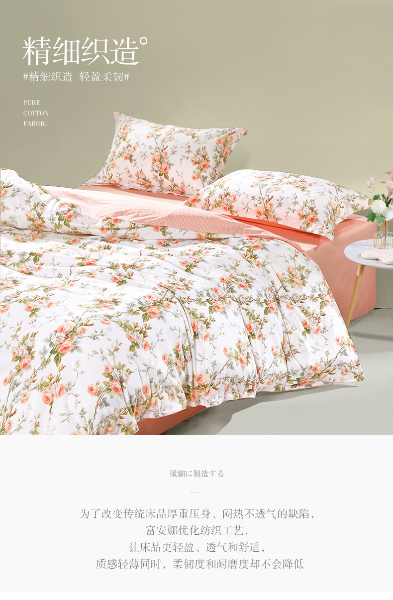富安娜家纺床上四件套纯棉 100%全棉床品套件 ins风小清新被套 双人加大床单枕套 汐颜1米8床(230*229cm)【DZ】【JD】 粉色