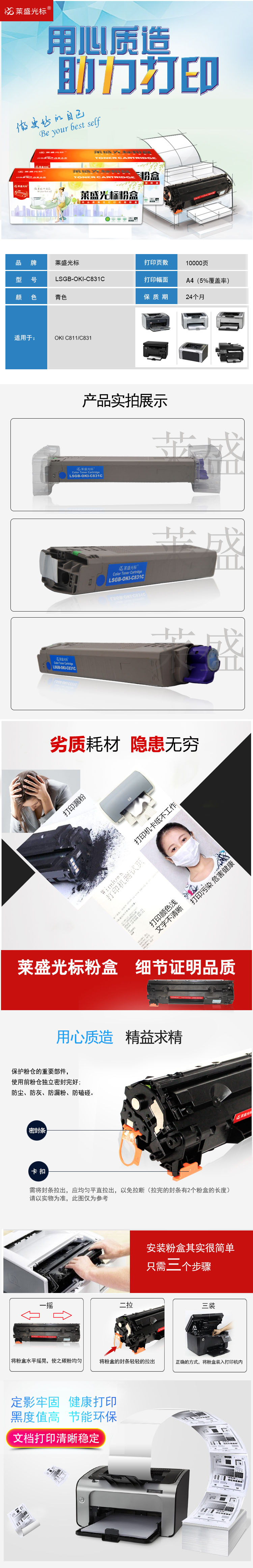 莱盛光标 LSGB-OKI-C831C 激光打印机粉仓 再生 有芯片 10K 青色