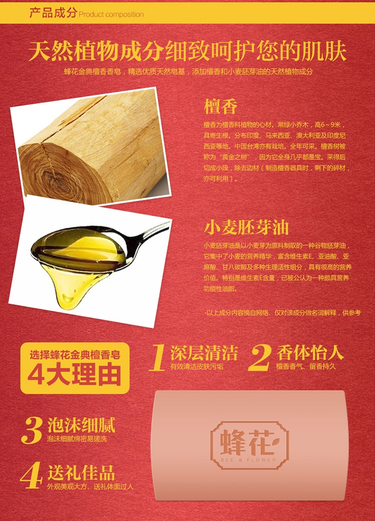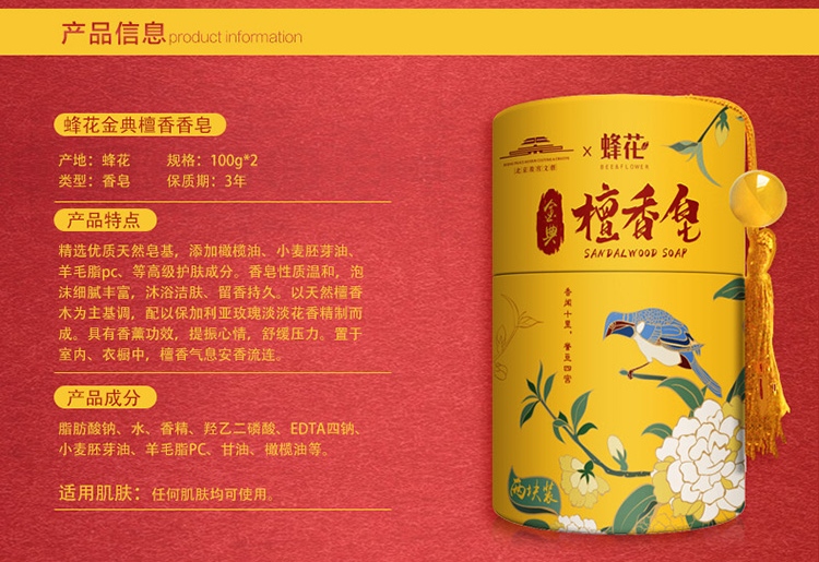 蜂花金典檀香皂100g*2罐装 黄色