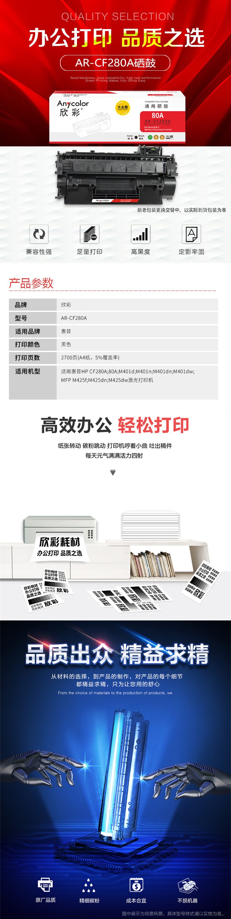 欣彩(Anycolor) AR-CF280A 专业版 2700页 (计价单位:支) 黑色 黑色