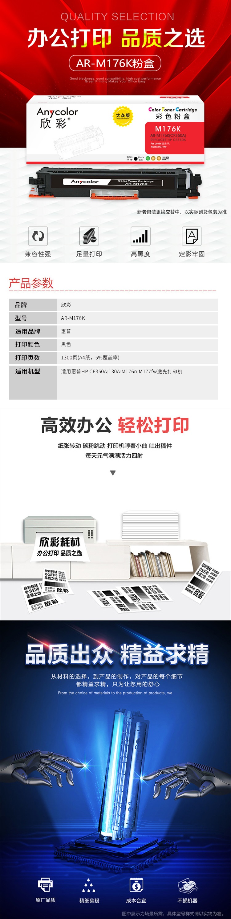 欣彩(Anycolor) AR-M176K 专业版 1300页 (计价单位:支) 黑色 黑色