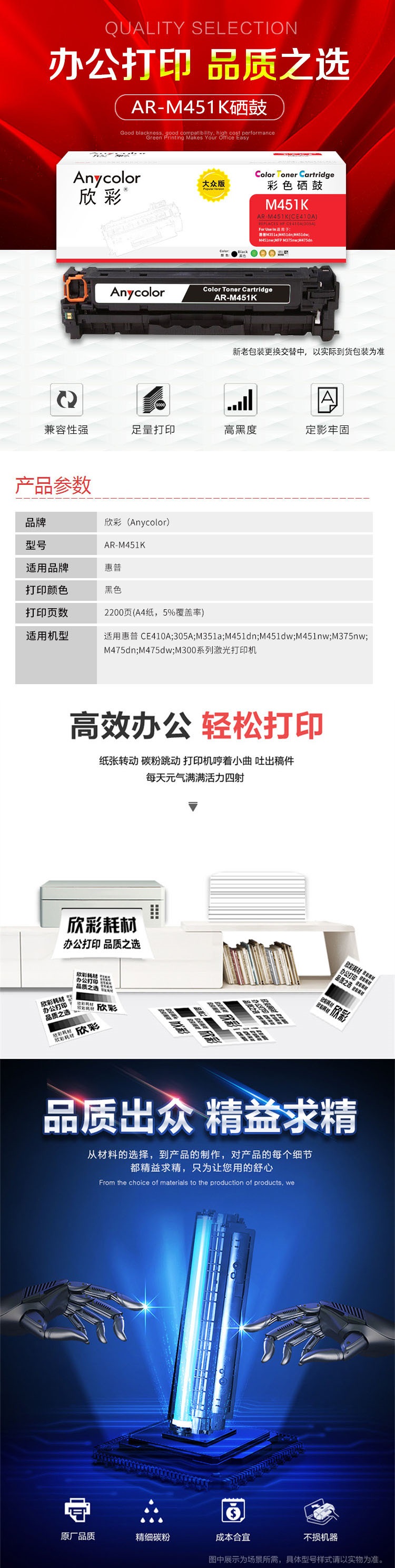 欣彩(Anycolor) AR-M451K 专业版 2200页 (计价单位:支) 黑色 黑色