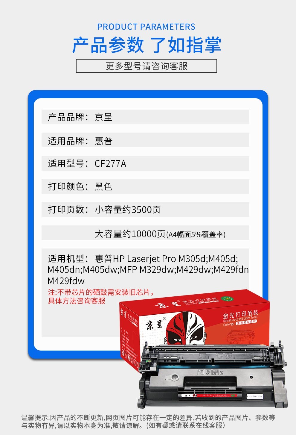 京呈CF277A硒鼓适用惠普M329dw硒鼓 M429fdw/fdn M405d打印机墨盒M305d单位:支 【带芯片】黑色硒鼓大容量10000页