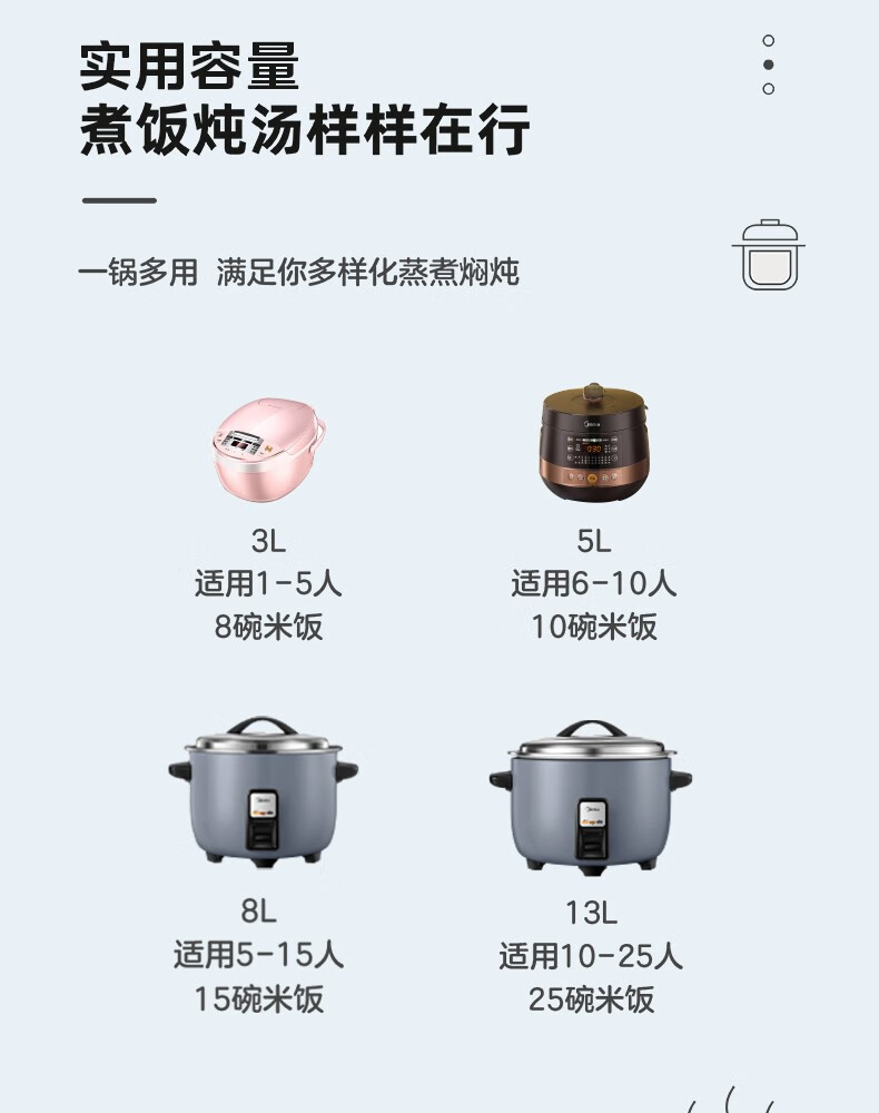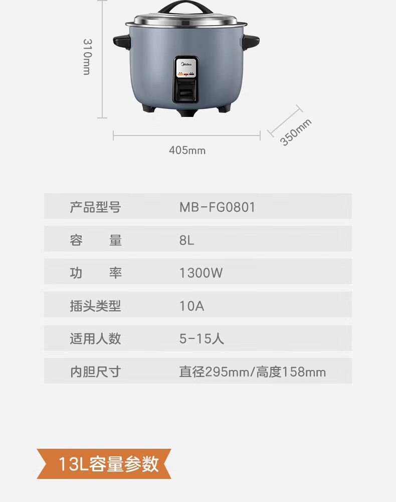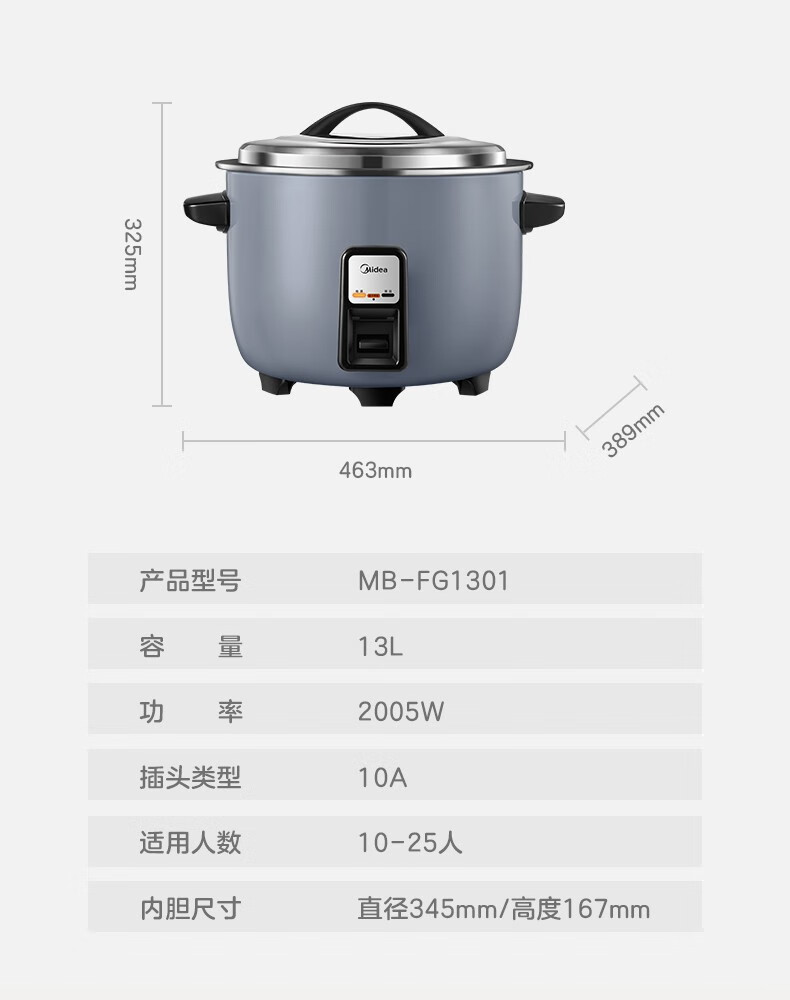 美的 商用电饭煲 13L大容量电饭锅 食堂饭店蒸饭锅 FG1301(单位:台) 灰色