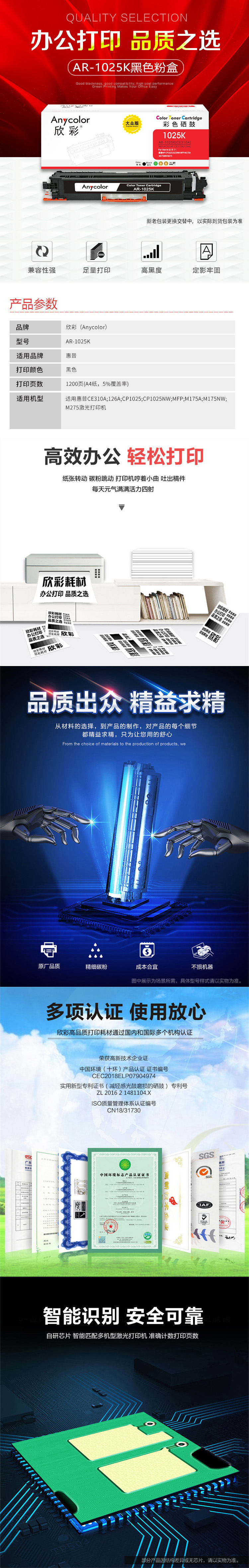 欣彩(Anycolor) AR-1025BK 1200页 适用惠普HP CP10251025NW 粉盒 1.00 只/支 (计价单位:支) 黑色