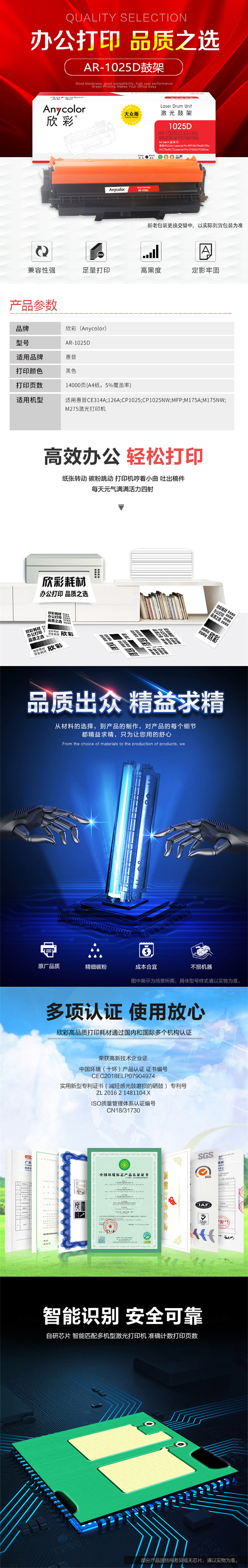 欣彩AR-1025D鼓架 大众版硒鼓 适用惠普CE314A 126A CP1025 CP1025NW MFP M175A M175NW M275激光打印机 黑色