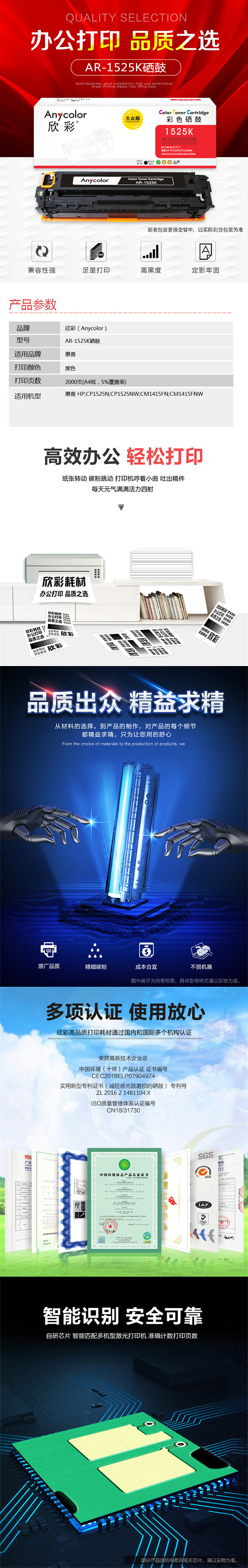 欣彩(Anycolor) AR-1525K 专业版 2000页 (计价单位:支) 黑色 黑色