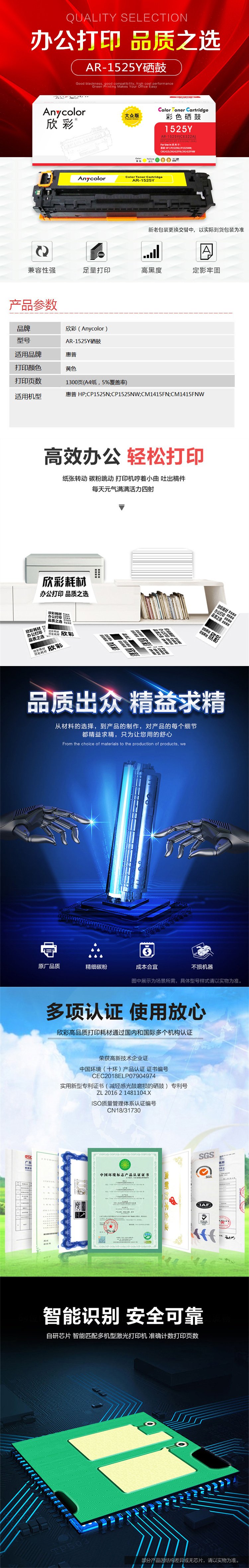 欣彩(Anycolor) AR-1525Y 专业版 1300页 (计价单位:支) 黄色 黄色