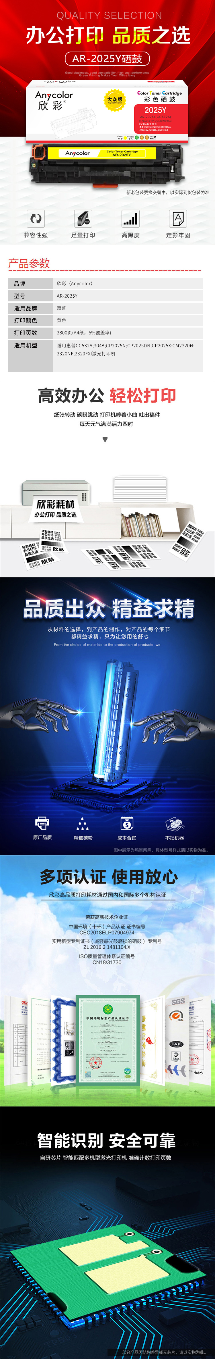 欣彩(Anycolor) AR-2025Y 专业版 2800页 (计价单位:支) 黄色 黄色