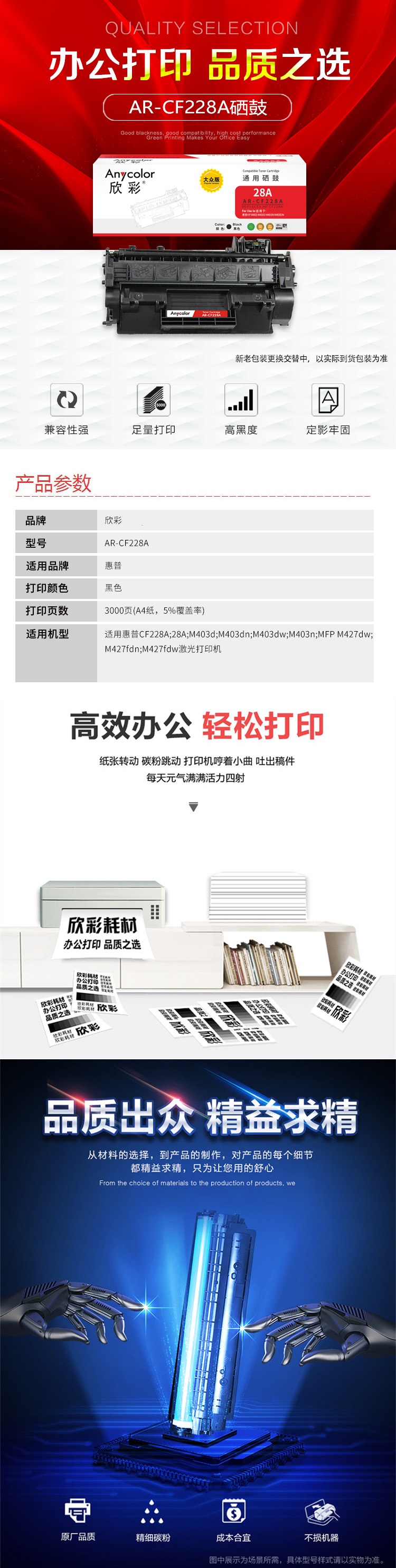 欣彩(Anycolor) AR-CF228A 专业版 适用HPHP M403等 硒鼓 1.00 只/支 (计价单位:支) 青色