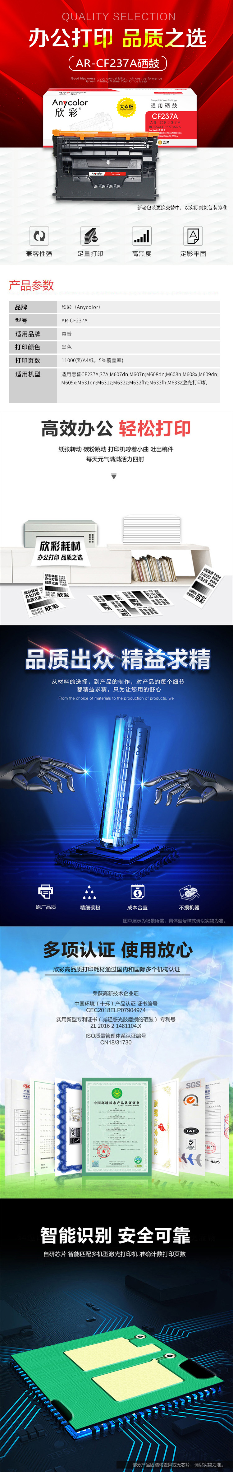 欣彩AR-CF237A硒鼓 大众版 适用惠普CF237A 37A M607dn M607n M608dn M608n M608x M609dn M609x激光打印机 黑色