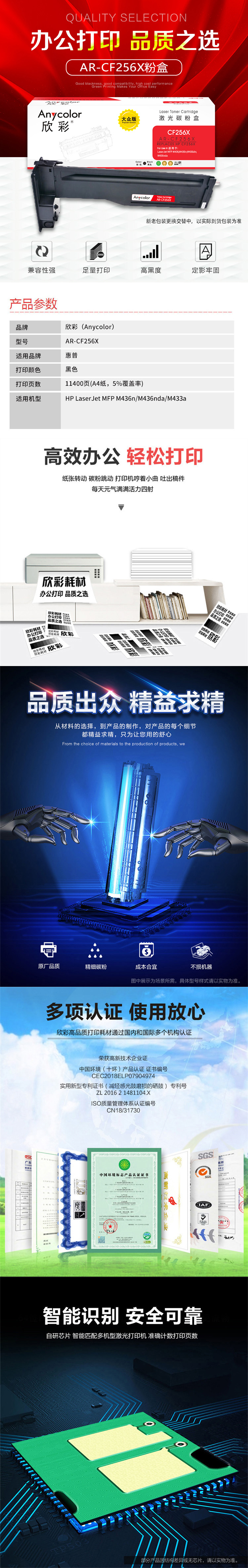 欣彩CF256X粉盒AR-CF256X大众版CF265A大容量56A适用惠普 HP LaserJet MFP M436n M436nda M433a 黑色
