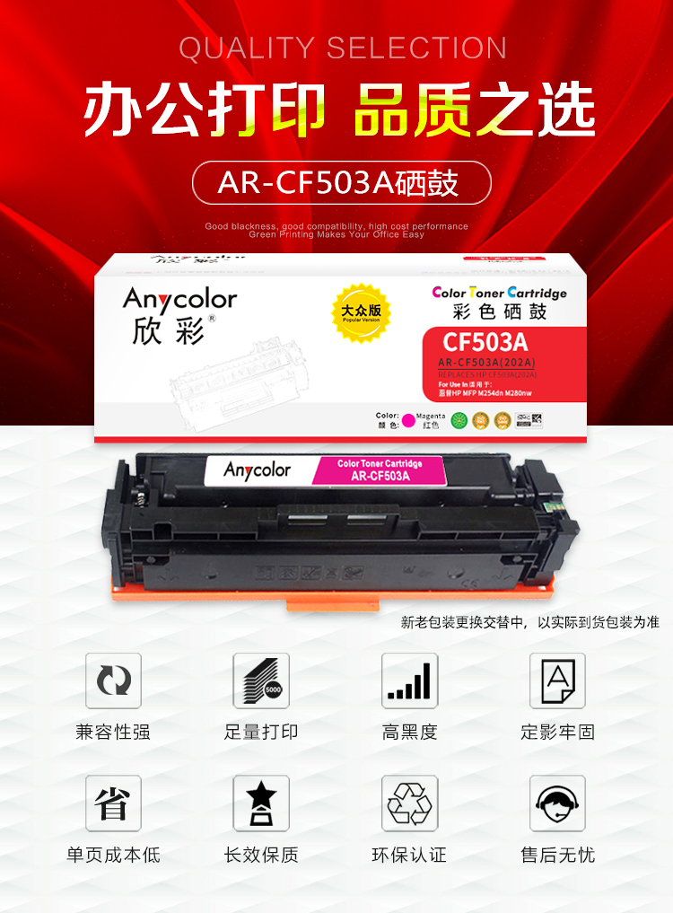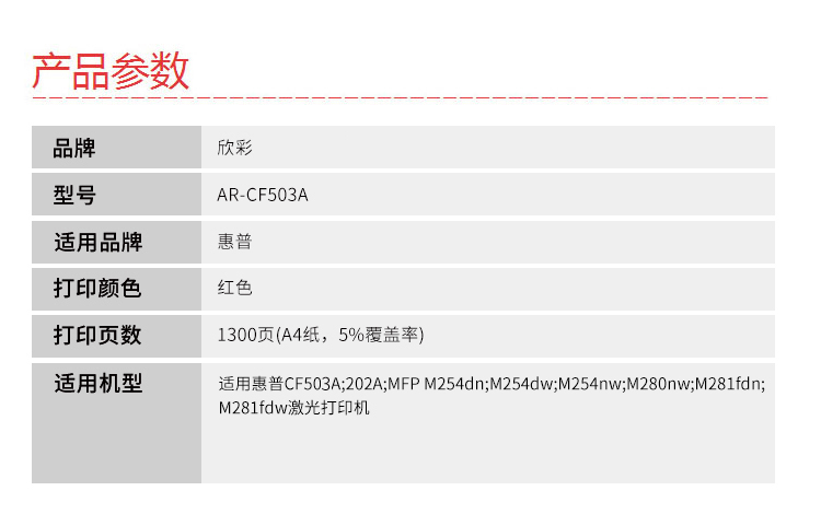 欣彩AR-CF503A红色硒鼓 大众版 适用惠普CF503A 202A MFP M254dn M254dw M254nw M280nw M281fdn激光打印机 红色